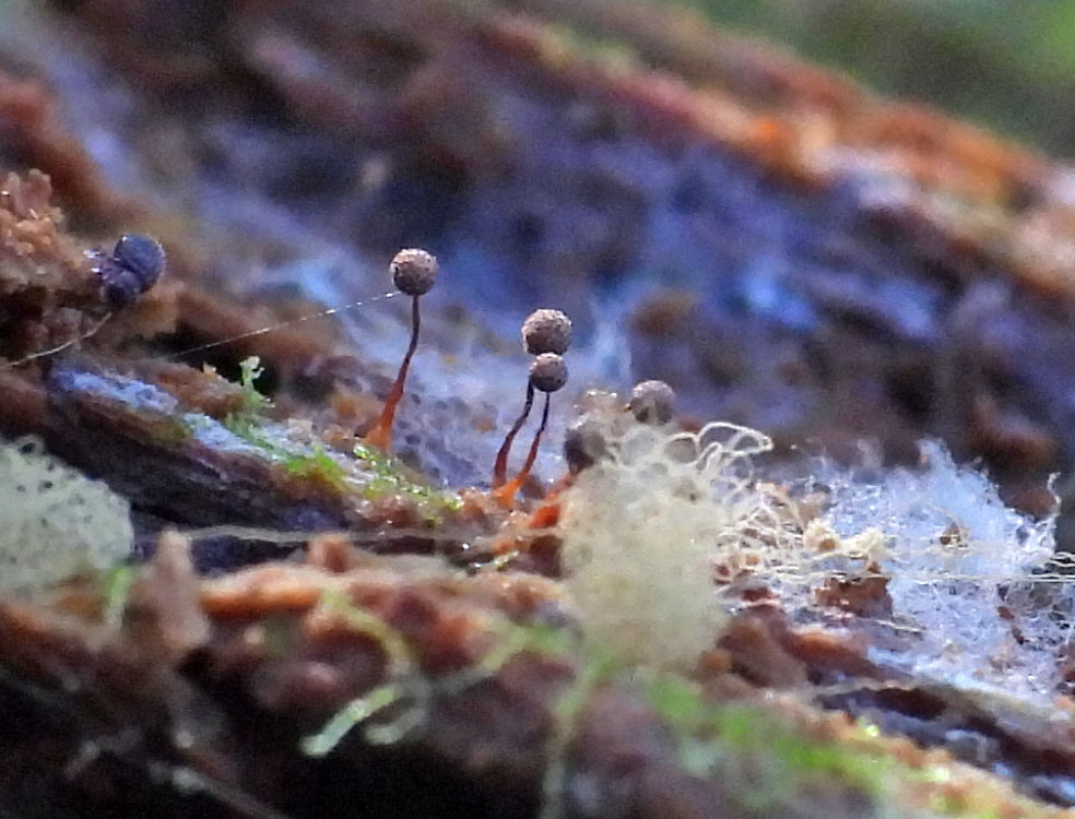 Konkrēti augi : Lākturītes Cribraria sp.; Lodbumbiera lākturīte Cribraria piriformis var. notabilis