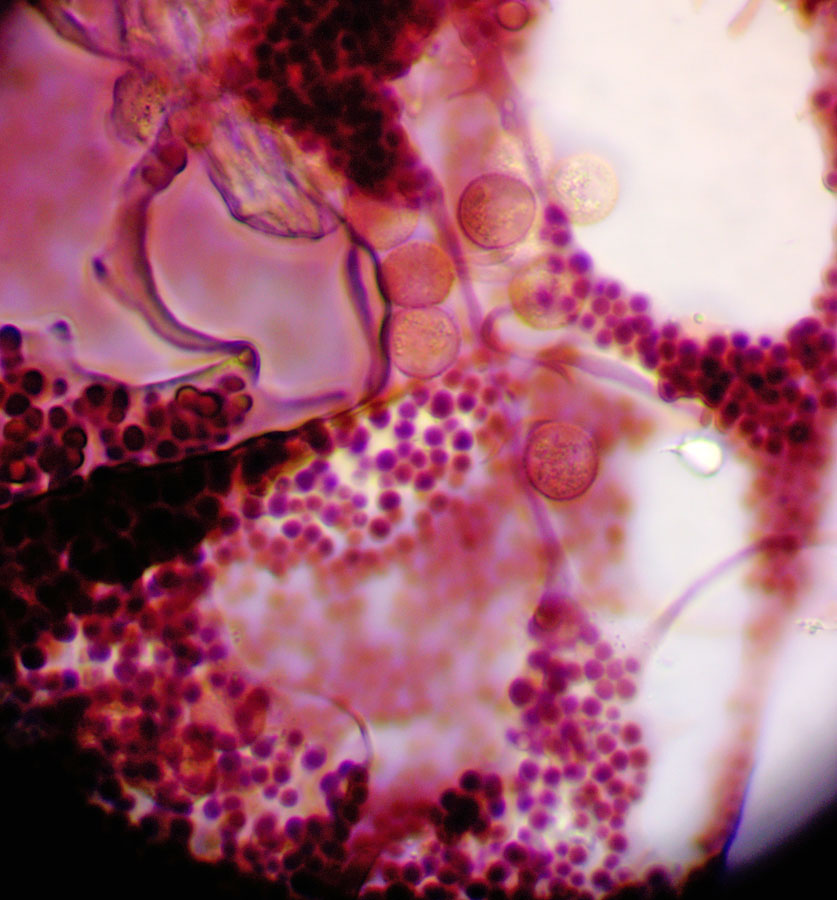 Violetā lākturīte Cribraria violacea - kapilīcijs, sporas un granulas