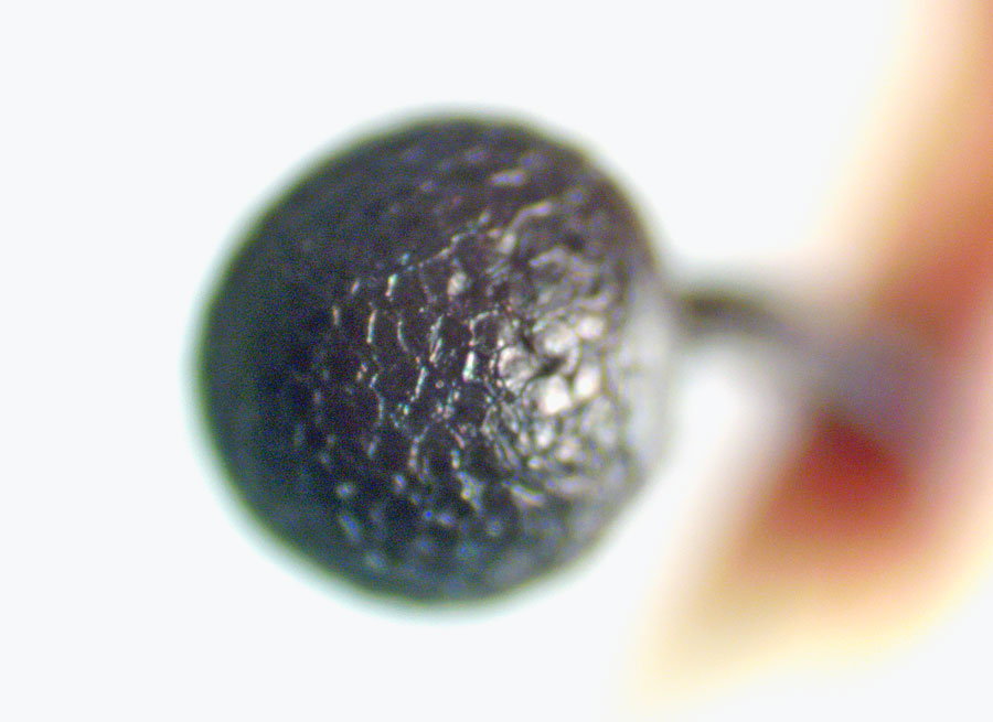 Sūnu vizulītes Diachea muscorum galviņa atgādina brūndobuļu lampīti Lamproderma gulielmae