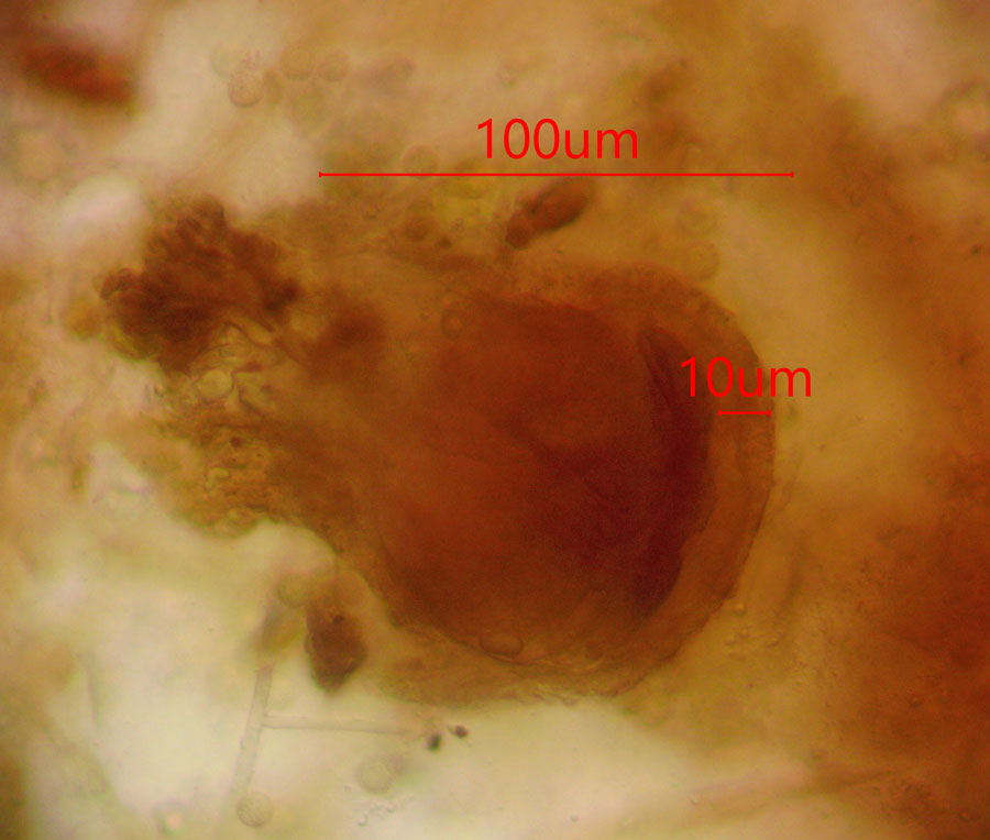 Gruzdošā vilkpienaine Lycogala ustulatum, lielais perīdija pūslītis ar biezo apmali