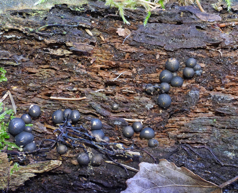 Plankumainā vilkpienaine Lycogala maculatum sporu stadijā uz apses kritalas