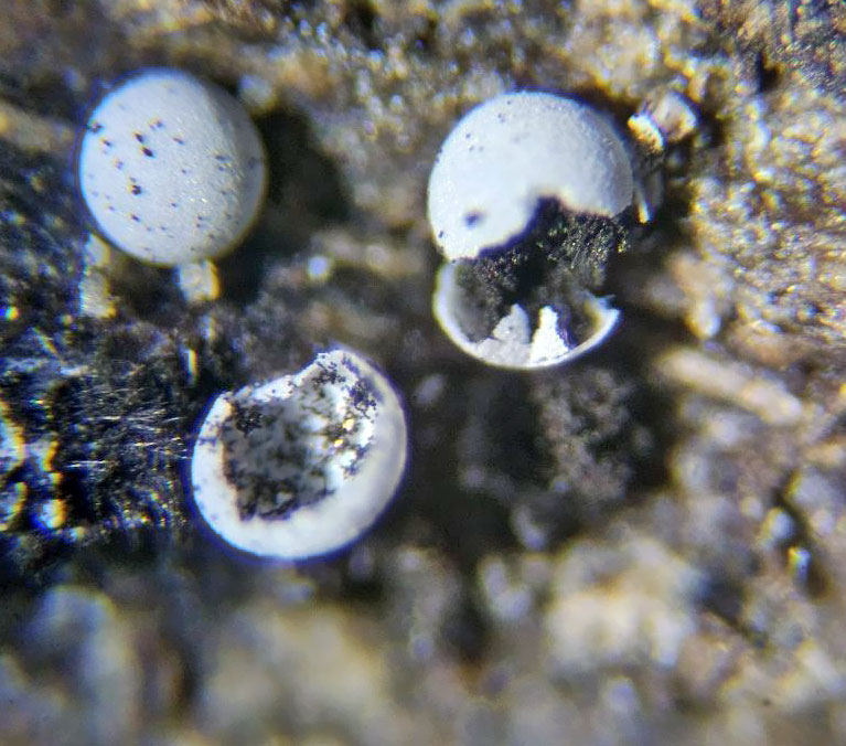 Svītrsporu cukurīte Didymium annulisporum sporu stadijā