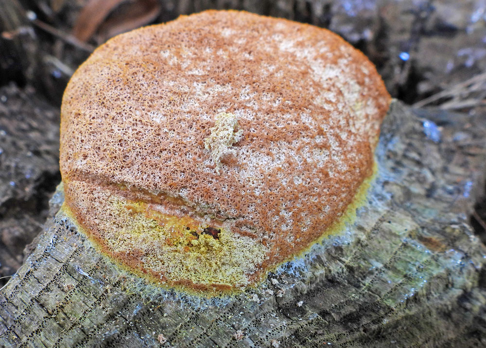 Rūsganais ragansviests Fuligo septica var. rufa uz celma Cīravas parkā