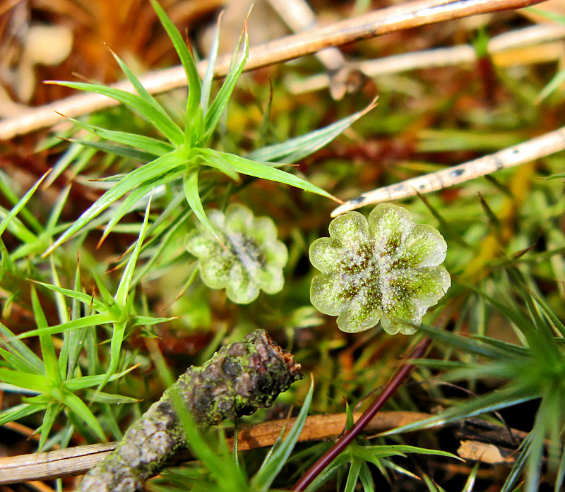 Austra, 2013-02-08: Attēlā redzami maršancijas vīrišķie augi, uz kuriem kātiņu augšdaļā attīstījušies plakani anterīdiju sastati